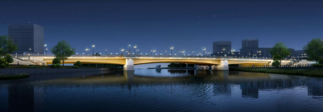 西门桥拆建工程项目总投资约1.3亿元,西起通江路,东至环城西路,包含西门桥桥梁工程及接线段工程,全长373米,宽40米,双向六车道,其中新建西门桥桥梁全长150米,共三跨,采用变截面预应力混凝土现浇连续箱梁结构。